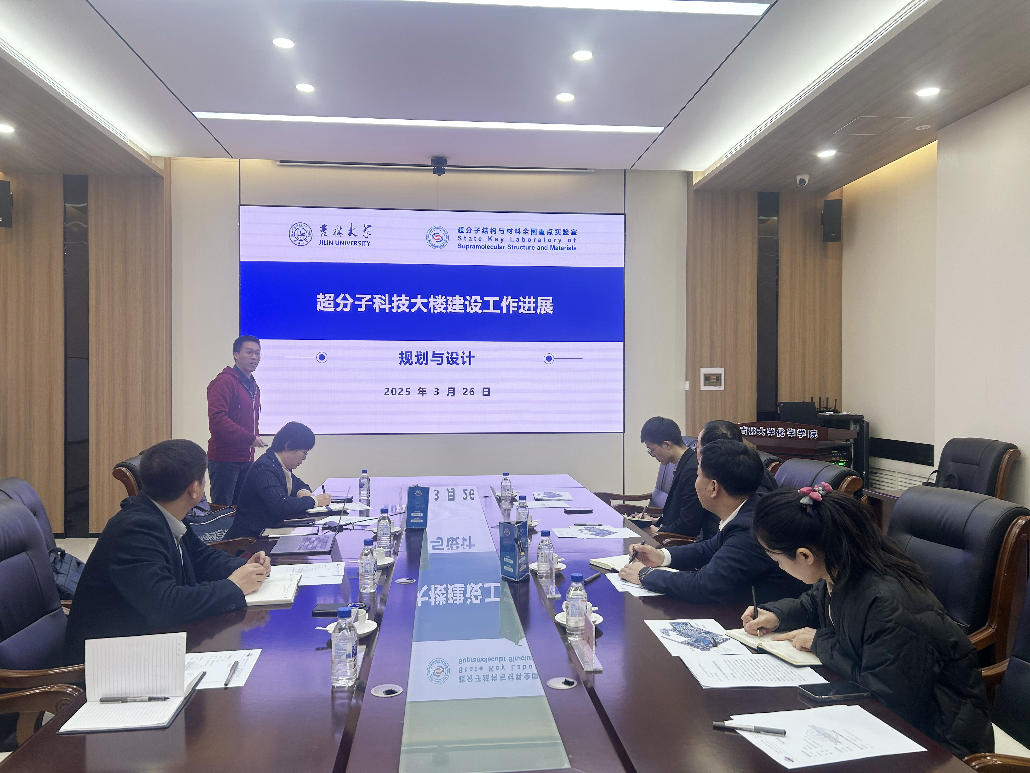 会上,超分子结构与材料全国重点实验室行政副主任梁龙琪从项目立项背景、拟定工作计划、国内外高校调研情况以及楼宇规划与设计等方面详细介绍了超分子科技大楼项目的工作进展。