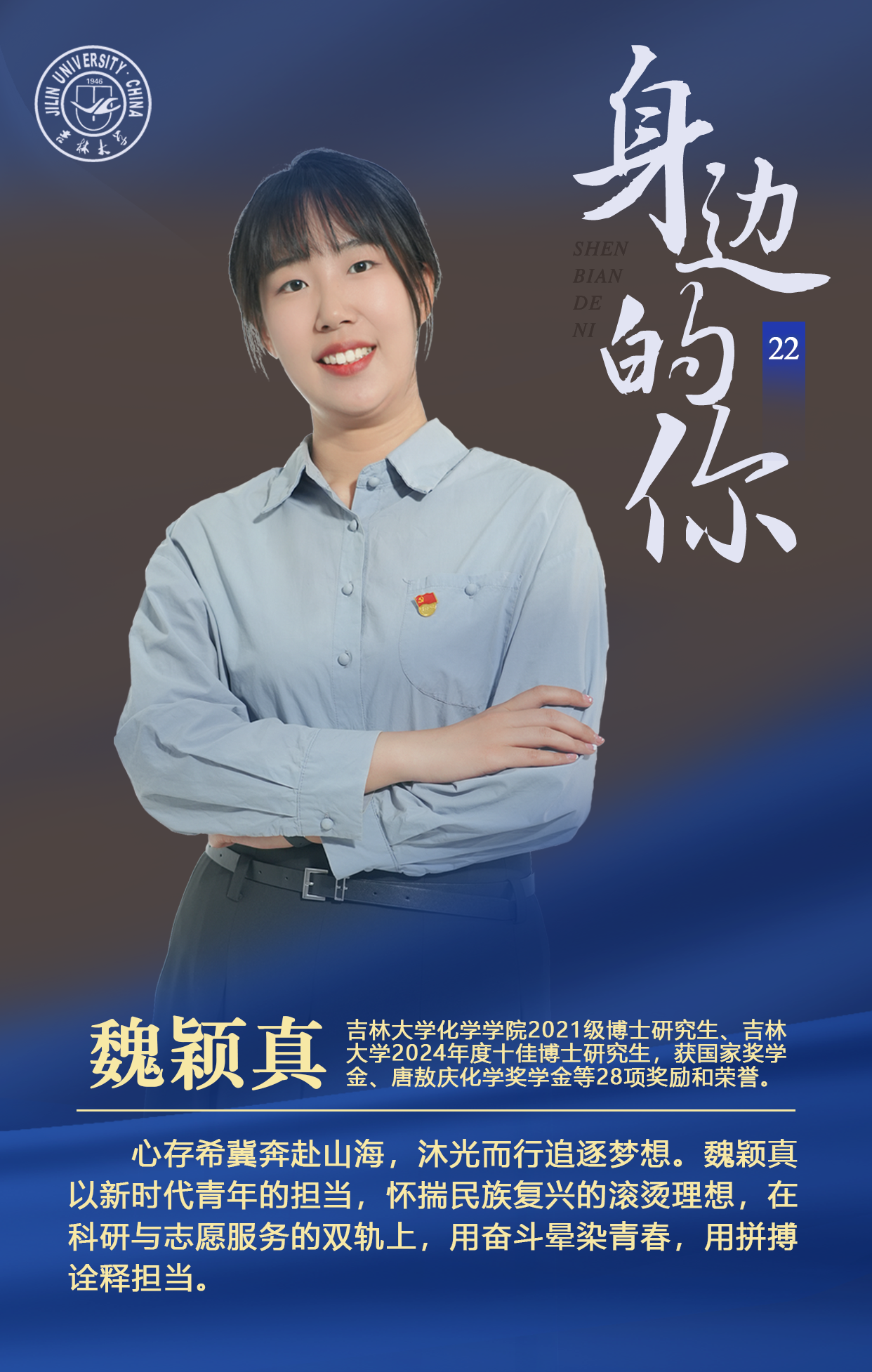 魏颖真,776net必赢官网2021级博士研究生、776net必赢官网2024年度十佳博士研究生,师从于吉红院士。曾获国家奖学金、唐敖庆化学奖学金、中银基础学科奖学金和研究生学术业绩奖学金、优秀研究生干部等28项奖励和荣誉。