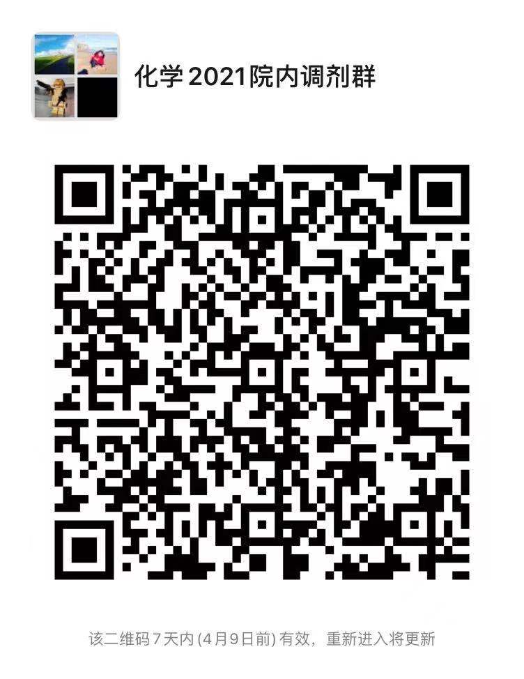 有意向院内调剂(第一志愿报考776net必赢官网,且过776net必赢官网线,理科达到300分)的考生,请于2021年4月2日前加微信群:化学2021院内调剂群。加群后,请以(姓名+报考专业 命名)。