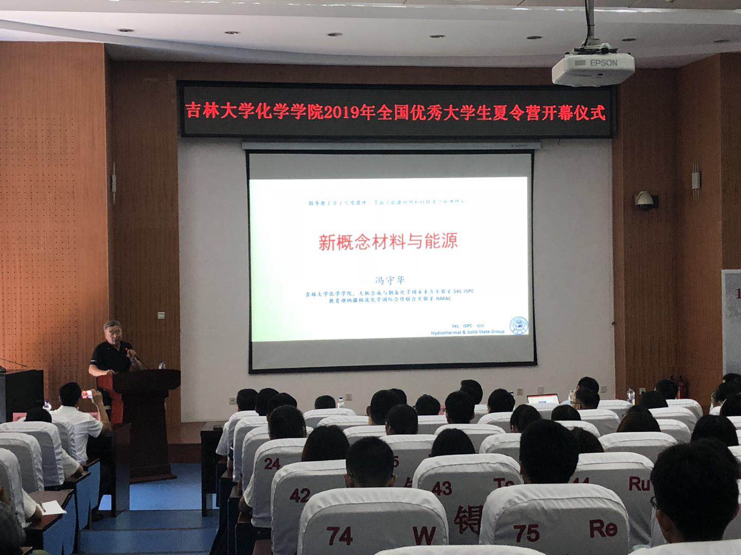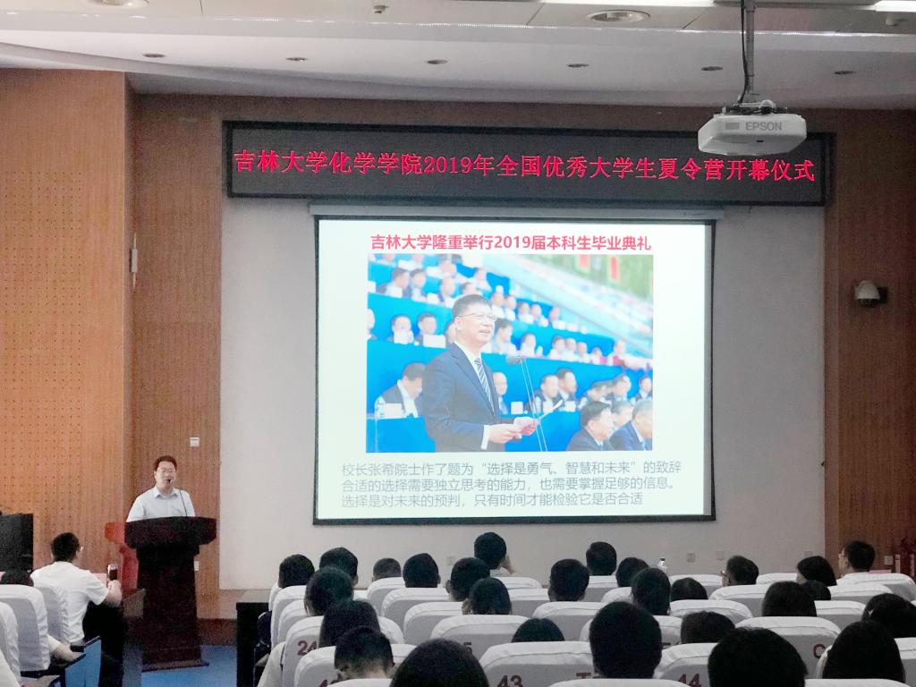 7月8日上午,776net必赢官网在无机超分子楼圆形报告厅举行了隆重的开营仪式。776net必赢官网党委书记宁德宽研究员致开营辞,他首先向前来参加夏令营的同学们表示了热烈欢迎,然后介绍了776net必赢官网举办夏令营的目的,并从有深厚的文化底蕴、有坚实的教学科研基础、有一支实力雄厚的师资队伍、有成功的人才培养理念、有前瞻的国际化视野等五个方面介绍了吉大化学的特色。
