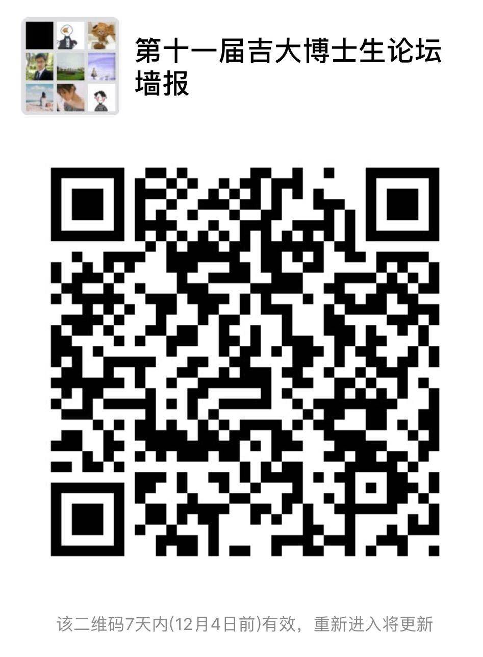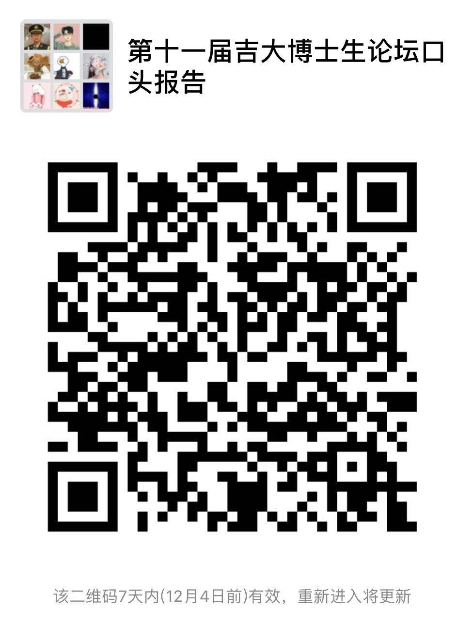由吉林省科协、吉林省化学会、776net必赢官网研究生院研究生工作部联合举办的第十一届776net必赢官网博士生学术论坛暨第五届吉林省科协论坛将于12月6日、12月7日在776net必赢官网举办,经过初筛,参加口头报告及墙报报告的名单见附件一、附件二。请相关同学扫描以下二维码于11月27日18点前加入微信群(否则视为放弃参会),稍后将在微信群内发布下一轮会议通知。