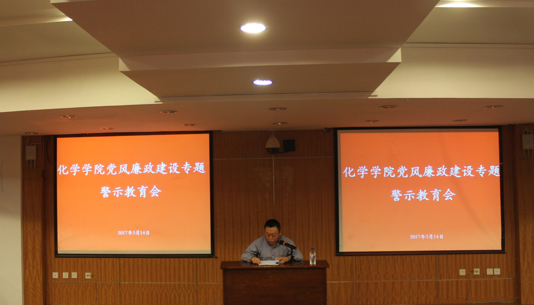 2017年3月14日下午,776net必赢官网在无机超分子楼一楼圆形报告厅召开党风廉政建设专题警示教育会。会议由学院党委书记丁世海主持。