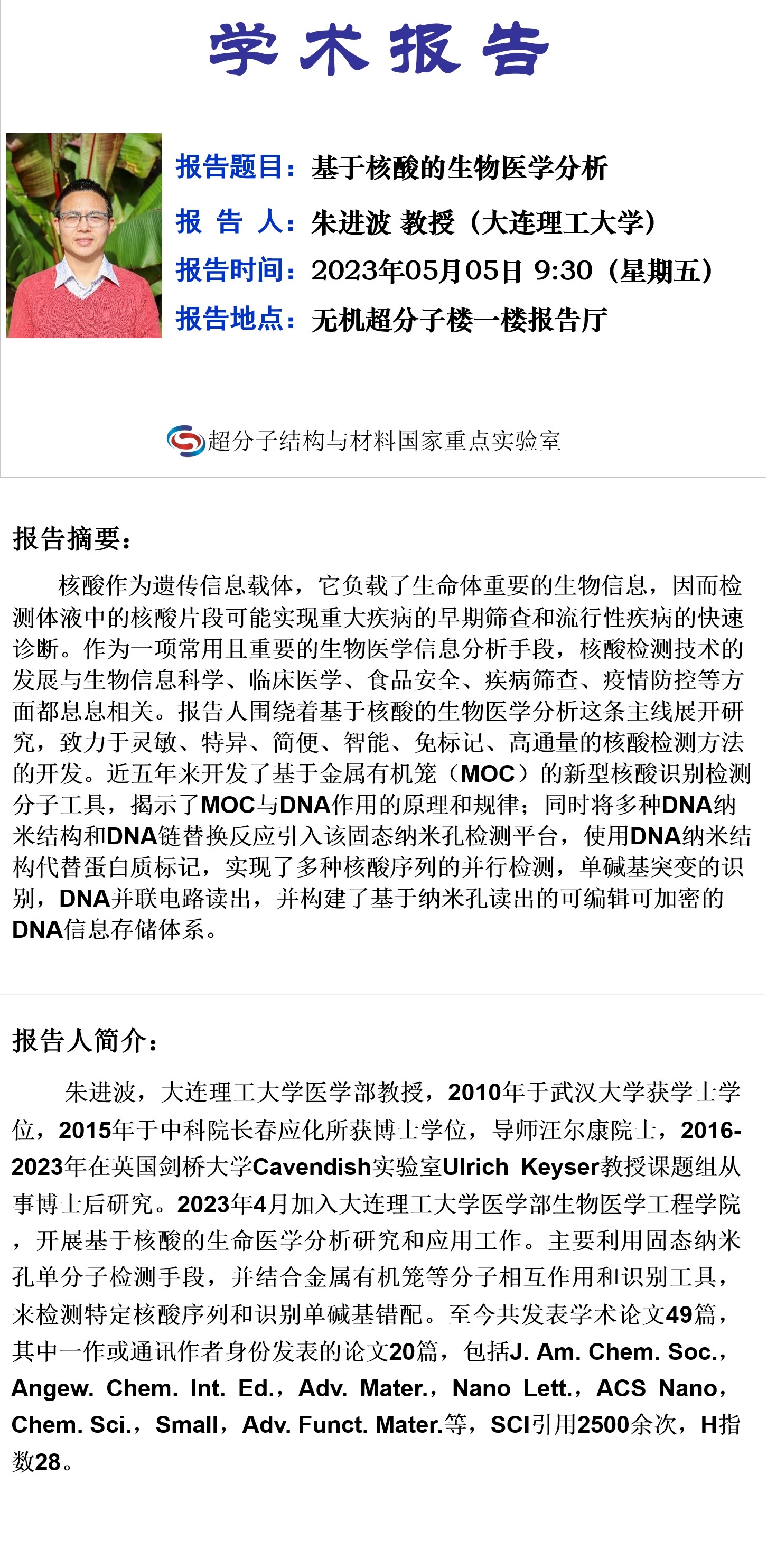 中心校区 无机-超分子楼 一楼报告厅