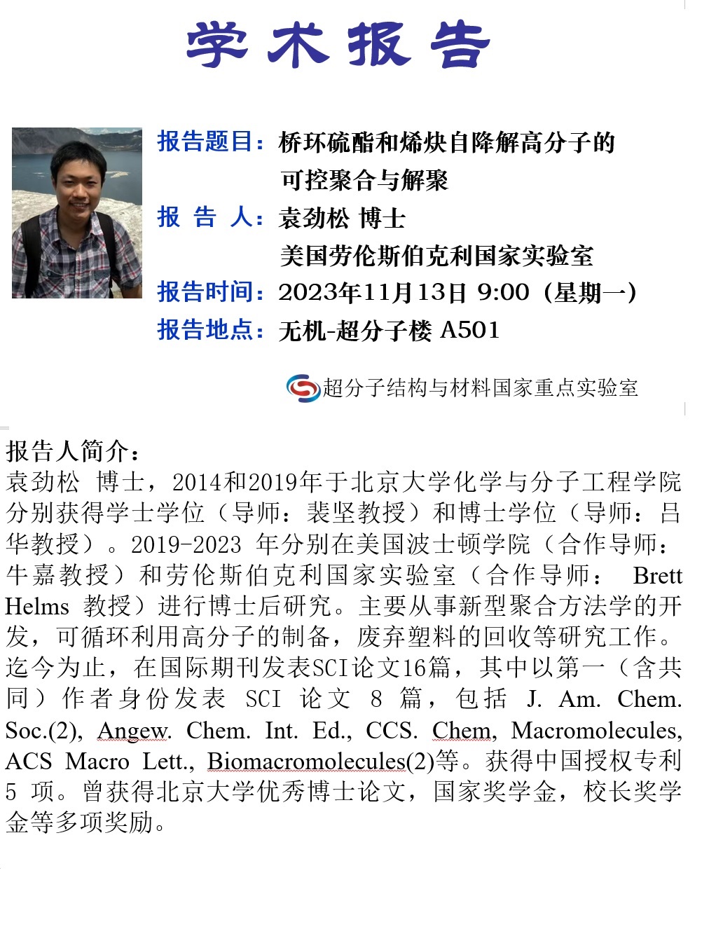 桥环硫酷和烯快自降解高分子的 可控聚合与解聚