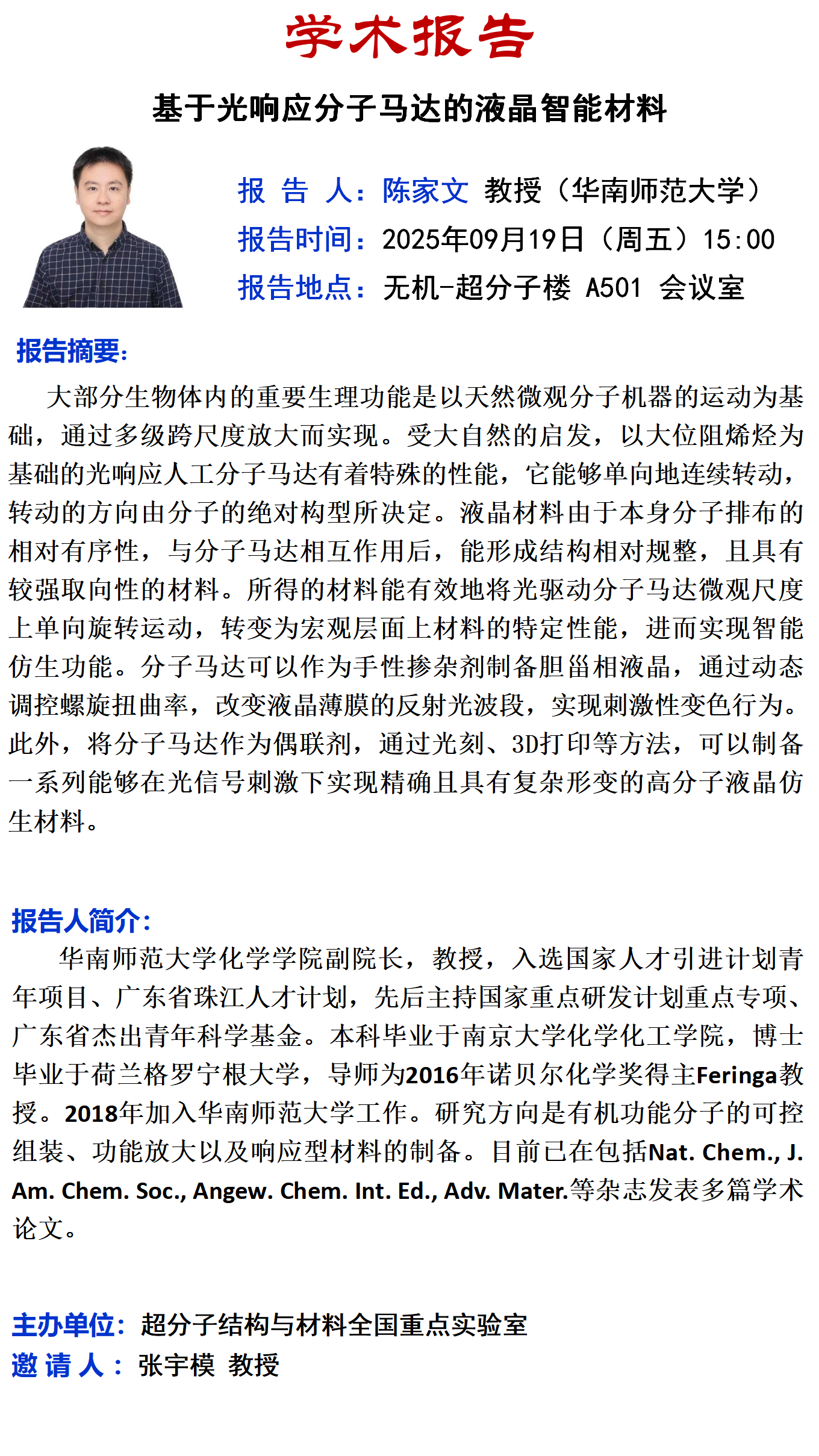中心校区 无机-超分子楼 A501 会议室