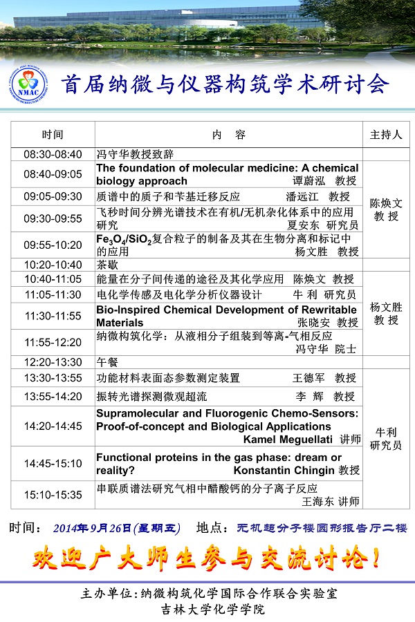 由纳微构筑化学国际合作联合实验室与776net必赢官网主办的首届纳微与仪器构筑学术研讨会将于