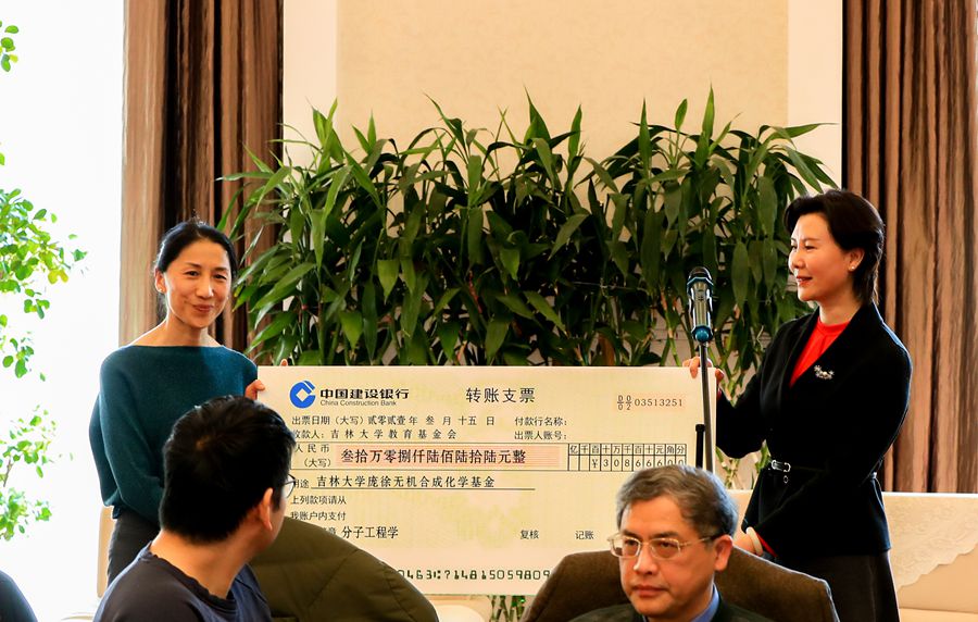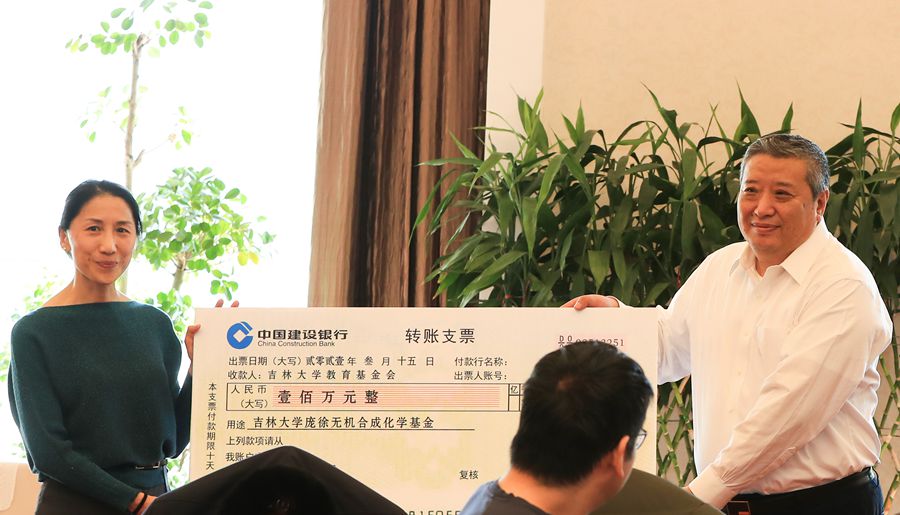 中国科学院院士于吉红教授代表776net必赢官网化学学科分子工程学研究方向毕业校友,与776net必赢官网1978级校友郝先儒先生,共同在仪式上向776net必赢官网庞徐基金捐款共计130余万元。