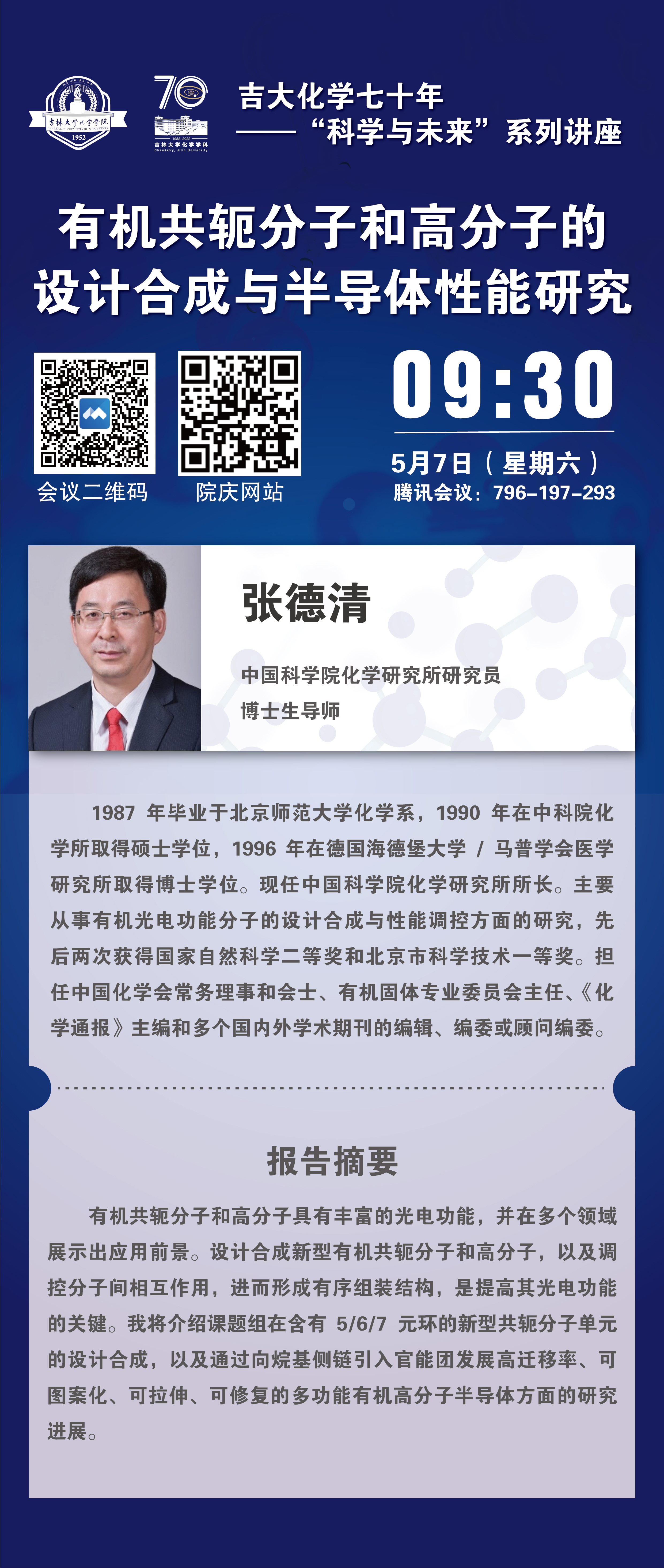 吉大化学70年院庆系列活动——有机共轭分子和高分子的设计合成与半导体性能研究