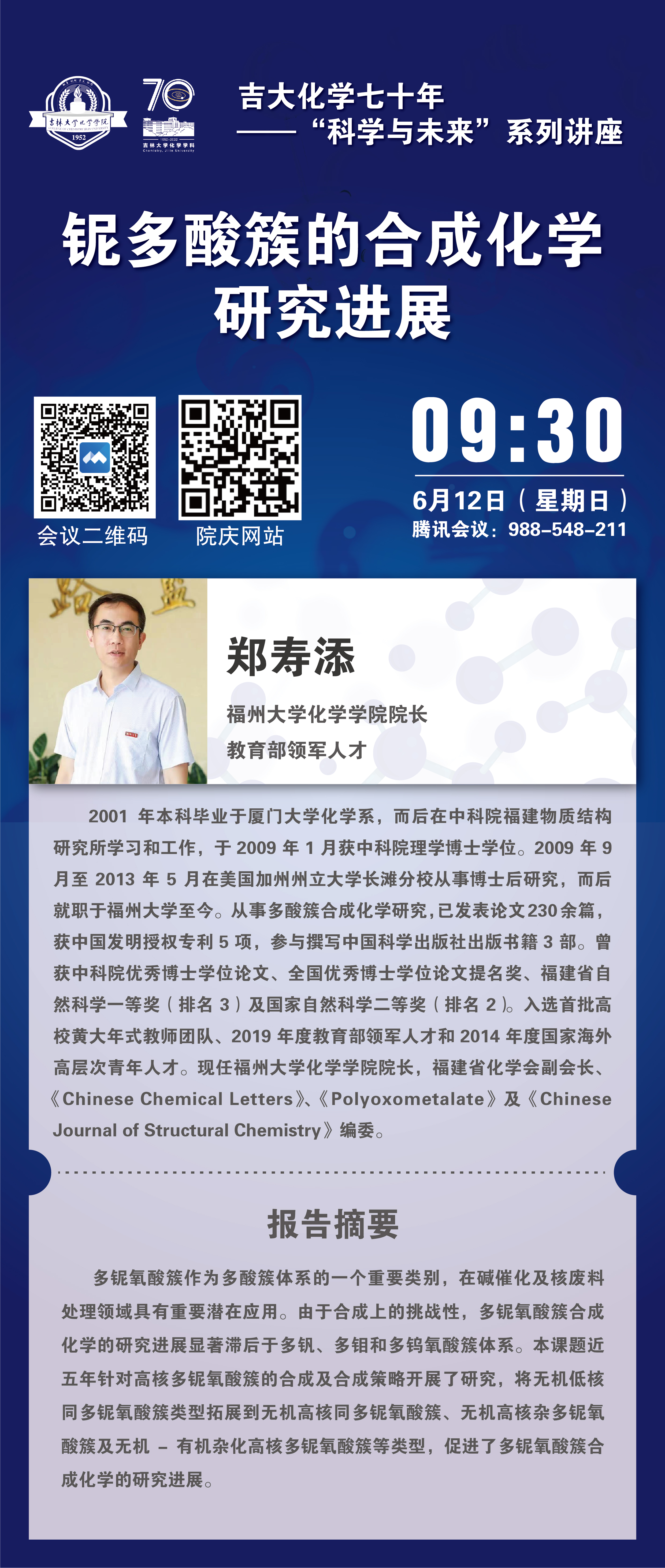 吉大化学70年院庆系列活动——科学与未来系列讲座:铌多酸簇的合成化学研究进展