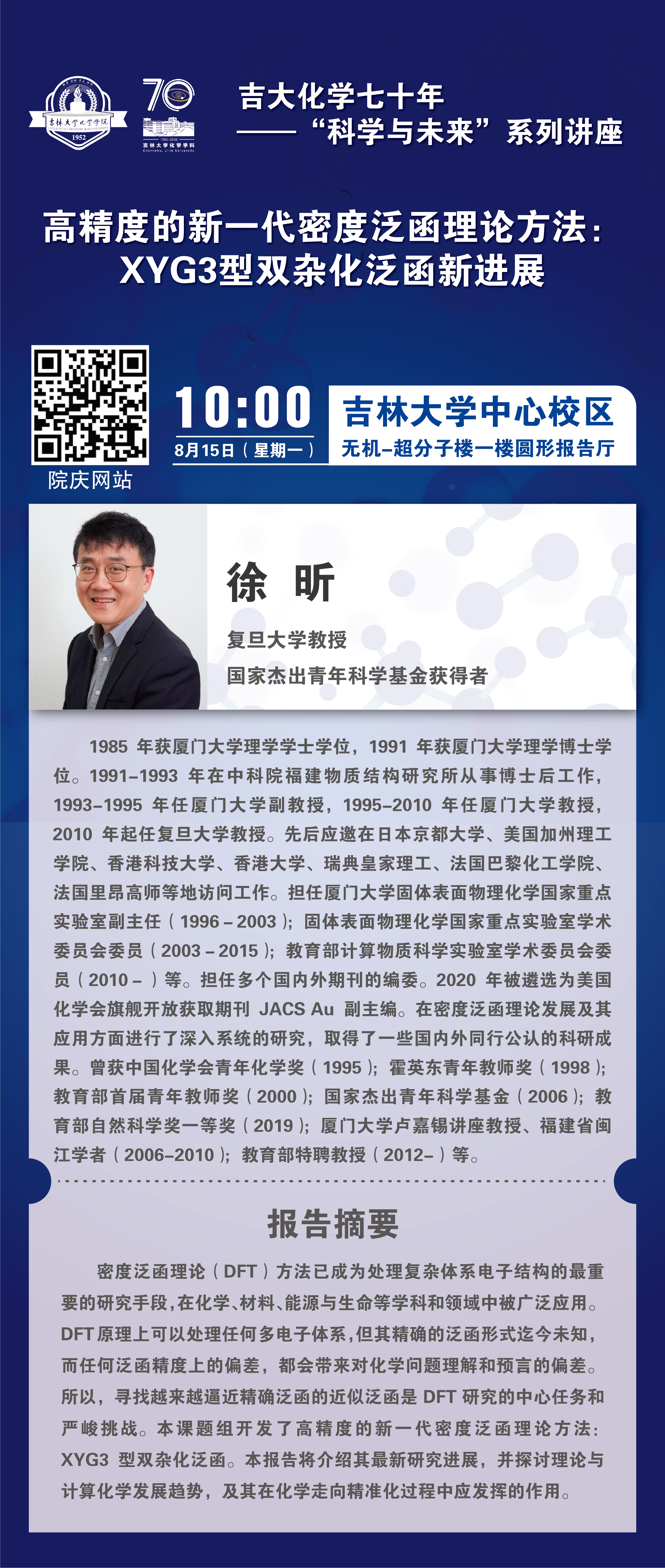 吉大化学70年院庆系列活动——科学与未来系列讲座:高精度的新一代密度泛函理论方法:XYG3型双杂化泛函新进展