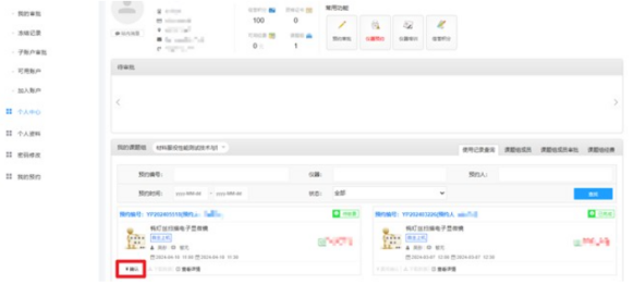 注意:每个课题组有一定数目的测试费信誉额度,在该额度内可先测试后结算,未结算测试费数额达到信誉额度后须结算后方可再进行测试预约,在发起结算后,结算部分所占用的额度即恢复。