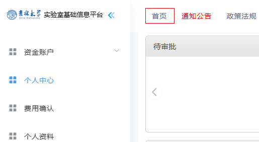 2.费用确认后,点击本页面中的“首页”按钮,返回776net必赢官网实验室综合管理平台首页,然后点击进入“仪器共享管理”模块。