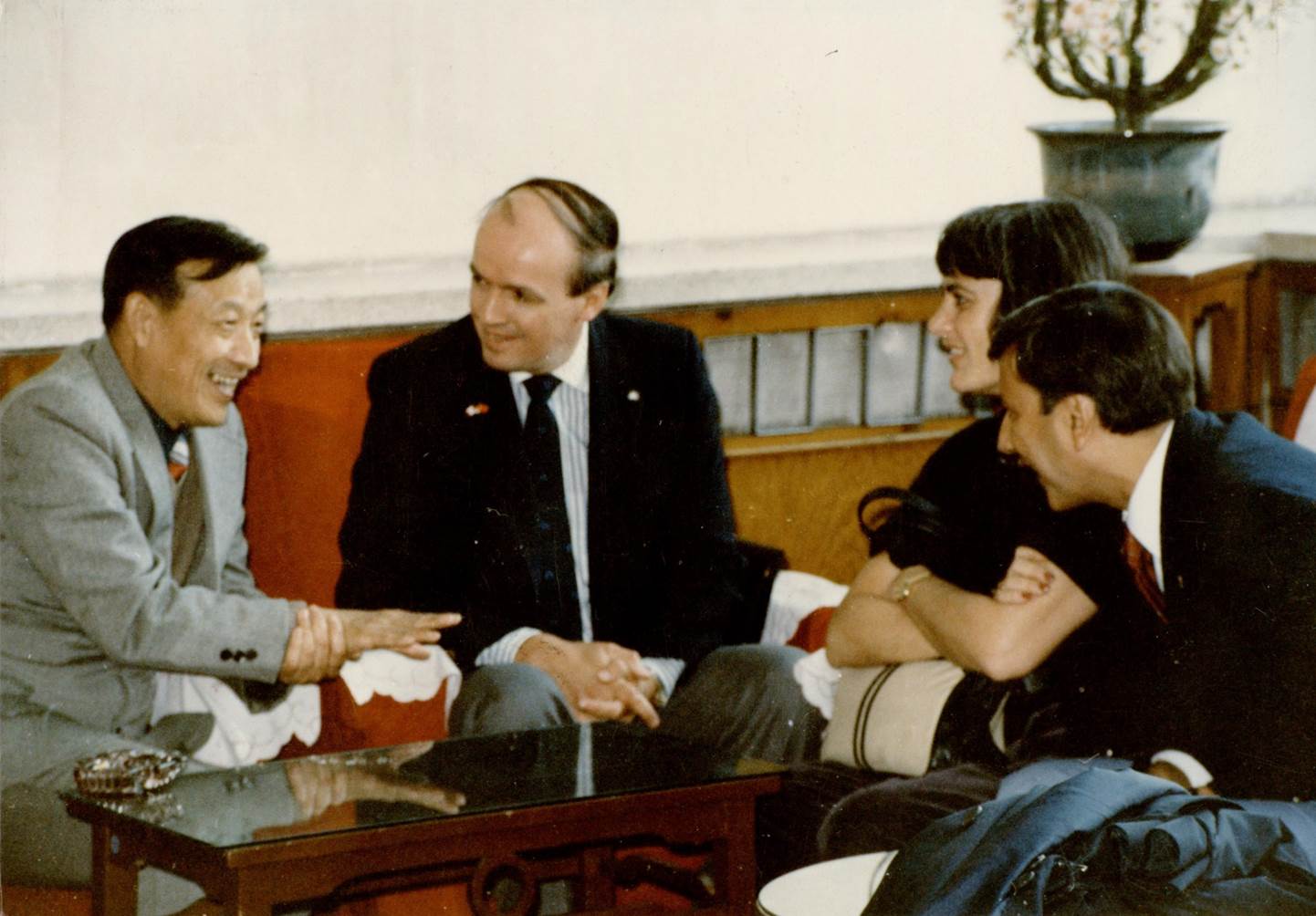 图11:1986年,776net必赢官网副校长沈家骢教授(左1)与加拿大温泽大学代表团交流