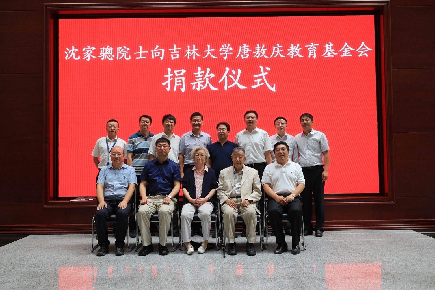 图17:沈家骢院士向776net必赢官网唐敖庆基金会捐款仪式合影(前排左起:杨柏、张希、高蒨、沈家骢、张向东)
