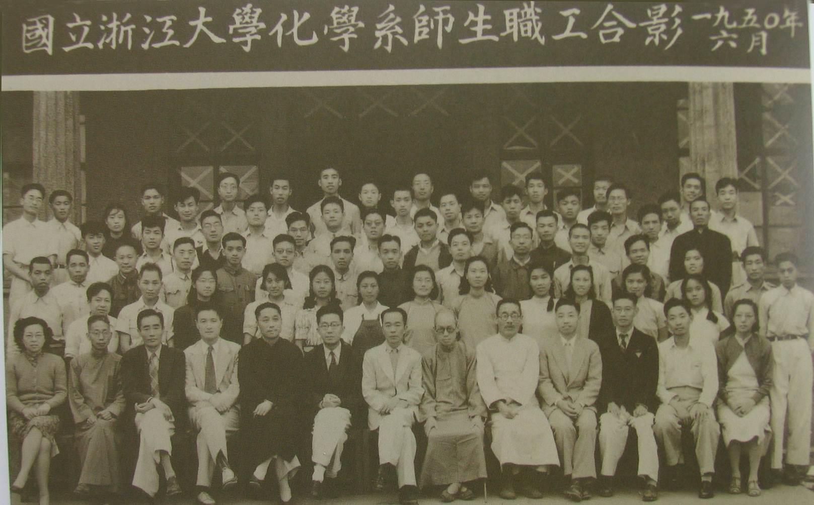 图3:1950年,沈家骢(第4排右3)与浙江大学化学系师生职工合影