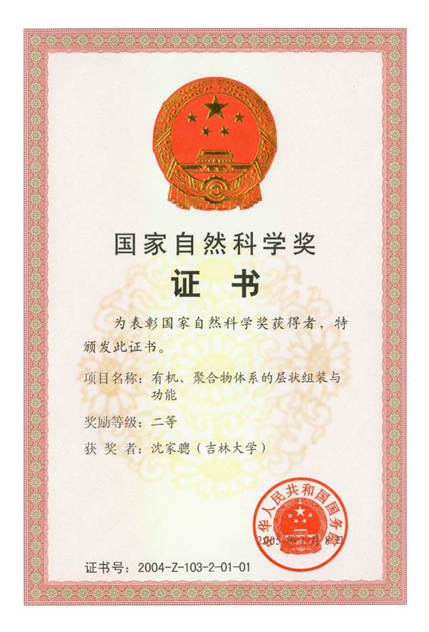 图6:2004年,沈家骢课题组获国家自然科学奖二等奖证书